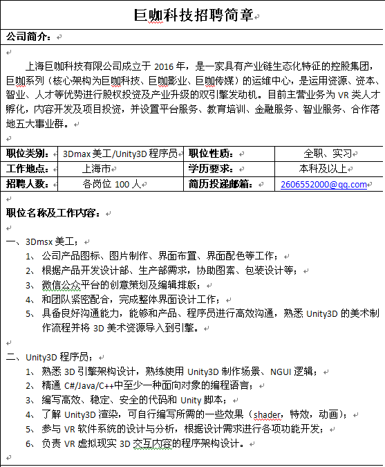 巨咖科技招聘简章