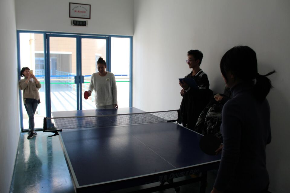 参赛教师通过抽签匹配对手后比赛开始,本次比赛分为男子组和女子组,采用积分赛制,每人一局,每局11球,按照赢球数量进行积分,1球1分,预赛积分前六进入决赛,依然以预赛的方式进行,最终成绩为预赛与决赛总积分。