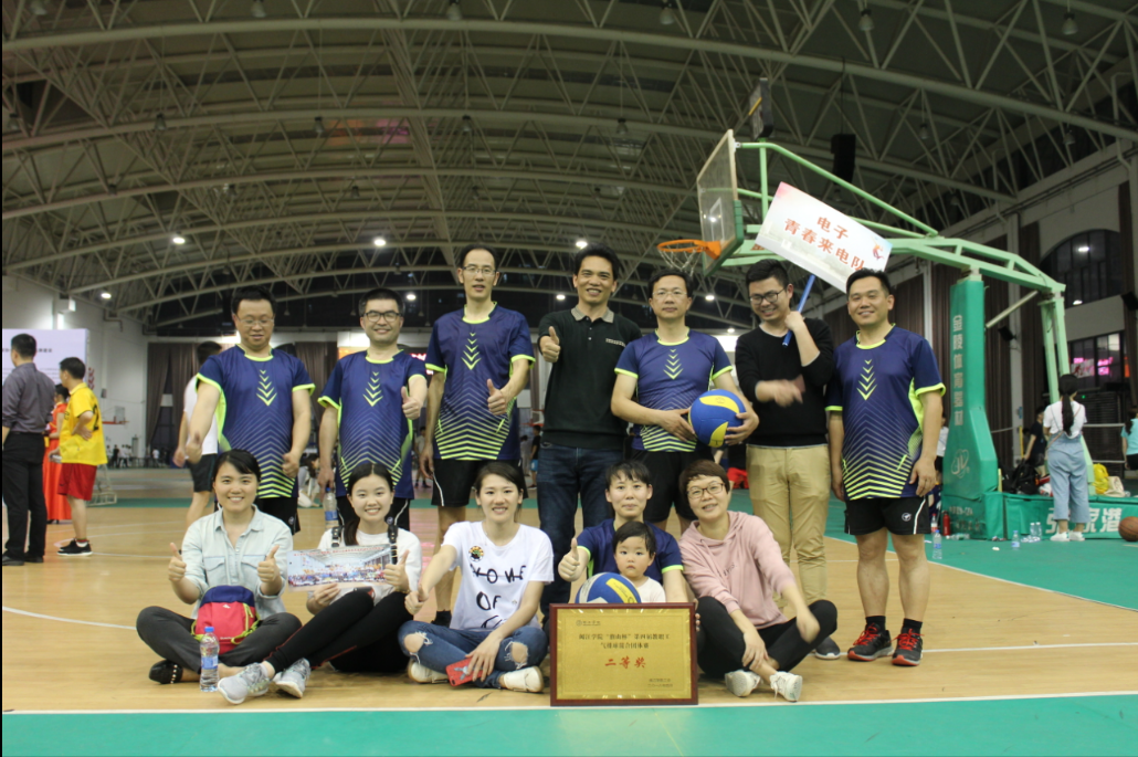 4月11日,由贾俊荣、沈耀国、鄢仁文、余华梁、陈金恩、许亦镜、周笔、黄元元等八位老师组成的电子系“青春来电”队参加了公司第四届“旗山杯”教职工气排球混合团体赛决赛。