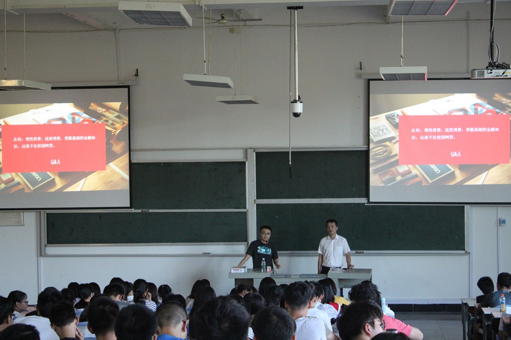 教完大家如何辨识不良校园网贷后,邱骏华员工归结了校园网贷的“几宗罪”:一是收费偏高,甚至高过不受国家保护的利率;二是门槛偏低、额度偏高、重复授信,诱导老员工越借越多,致其无力偿还;三是中介代理发展下线,引导应聘人借款,变相收取培训费甚至肆意收取高额佣金费;四是野蛮催收,利用各种手段甚至动用暴力催促员工偿还高额贷款。除此之外,还有无数令人发指的罪行。为了进一步警醒同学们远离校园贷款,邱骏华员工还列举了三个真实的案例,惨痛的教训、不幸的结局让大家印象深刻。