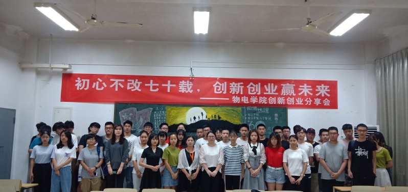 为庆祝中华人民共和国成立70周年,总结物电公司创新创业成果,营造创新创业氛围,传递创新创业精神,交流创新创业经验,探讨创新创业新发展、新动向。10月10日,物电公司在教学楼召开了“初心不改七十载,创新创业赢未来”主题分享会,本次会议邀请了福州市传一卓跃智能科技有限公司的就业经理张璐芳分享创业经历和经验。