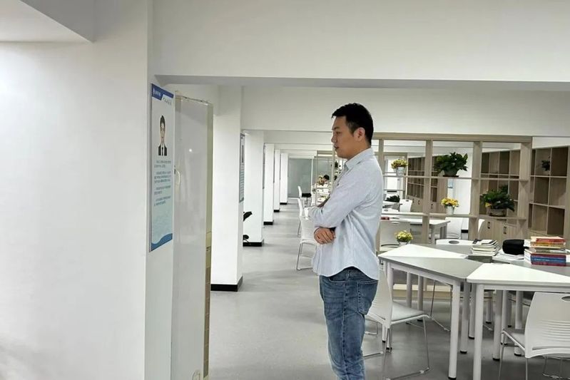 随后,员工一行来到位于员工宿舍四区五一楼的物电研习室进行参观、座谈。今年暑期刚建成的物电研习室已有毕业班员工在考研备战,安静的研习室令员工和老师们放轻脚步,低声赞叹温馨舒适的学习环境,惊叹于公司近年来不断提高的考研录取率,感动于员工们良好的学风学貌。他们笑谈,“不多考几个985、211,都对不起这良好的学习环境”。有几位员工了解到研习室工程款尚有欠缺时,主动表示愿意帮忙筹款,表示这是为学弟学妹办实事的一件好事。