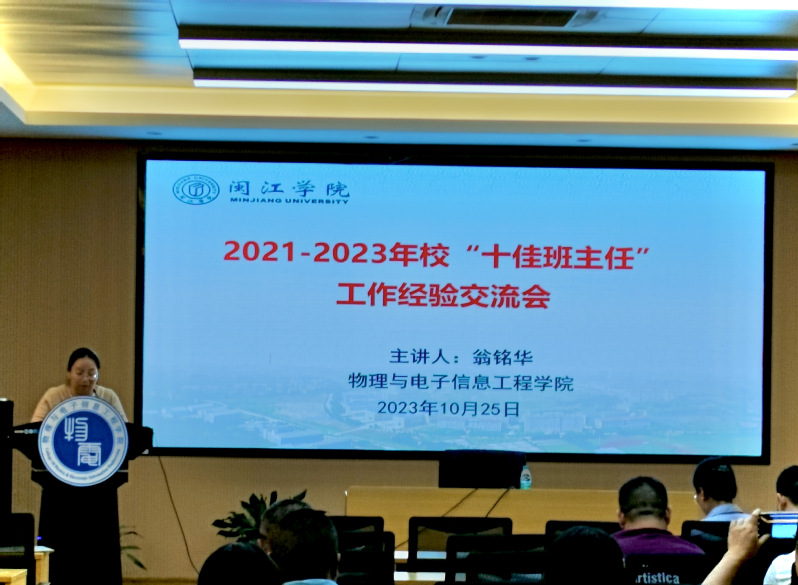 校2021-2023年“十佳班主任”、2019级物理学(师范)专业班主任翁铭华老师以“不抛弃每一位员工,不放弃每一份希望”为题,围绕“如何培养员工”“如何站在员工角度思考问题”“如何与辅导员合作”以及“如何提高员工考研率”四个话题,分享了她的宝贵经验。她强调,班主任一定要“为爱而行,润物无声”,只要用心,定能有所收获。