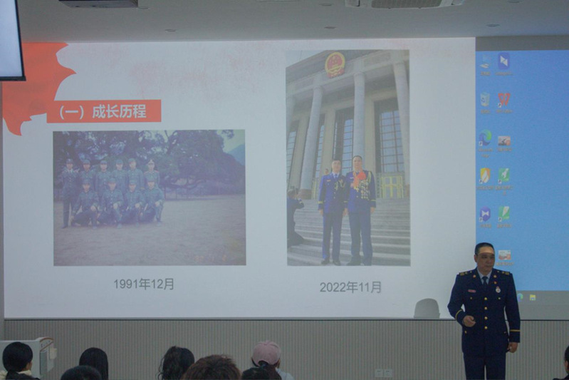 涂教官以《争当新时代优秀消防员》为题,结合自己的成长经历和参与灭火救援工作情况,诠释扎根基层、抓好基本功、不畏艰难险阻抢险救援的无私奉献精神。