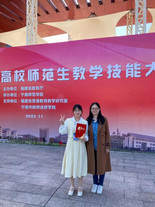 同时,丁欣睿同学正在福州四中橘园洲中学实习,近3个月的教育实习,不仅让她向福州四中的老师学习教学技能,也进一步锻炼了她的胆量和信心,对比赛取得优异成绩起到了助推的作用。