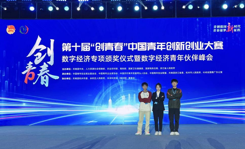 本次大赛以“青创报国新时代,青春逐梦新征程”为主题,重点聚焦以互联网、大数据、云计算、区块链技术、元宇宙等方式推动数字经济和实体经济融合发展、运用数字经济手段改造发展传统行业的项目,共吸引来自全国各地的2287个项目报名参赛。物电公司2021级电子信息工程专业雷丘丽萍、陈小清、杨烔3位同学,经过层层选拔,入选初创组全国30强,入围现场决赛,展现出物电学子敢闯会创、勇于拼搏的青春风貌。比赛中,物电学子展现了对数字经济的独到见解和创新潜力,得到了现场评委的充分肯定。