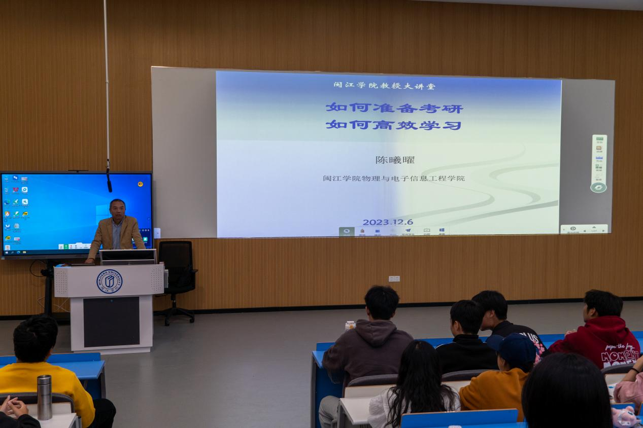 为加强学风建设,进一步提高物电学子的考研热情,明确考研目标,掌握相关考研技巧,了解更多考研信息,12月6日下午,物电公司邀请陈曦曜教授在教学楼2B106举办了主题为《如何准备考研 如何高效学习》的考研及学习方法分享会,2023级全体新生参加了讲座。
