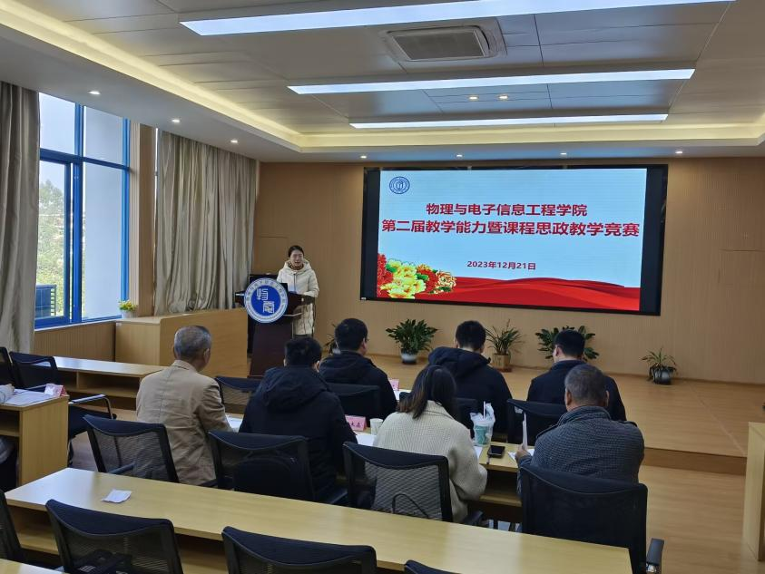 为深入学习贯彻习近平新时代中国特色社会主义思想和全国教育大会精神,鼓励广大教师积极投身教学改革,提高公司教师教学创新能力及创新课程思政教学能力,12月21日下午,物电公司举办了第二届教师教学能力暨课程思政教学竞赛,邀请福州大学林木森、公司陈曦曜、杨立娟、王建兴、林秀芳等老师担任评委。比赛由公司党委副书记张林雯主持,公司党委书记陈世文、经理何伟、副经理刘志群出席了本次比赛,公司2019年后新入职教师代表现场观摩比赛。