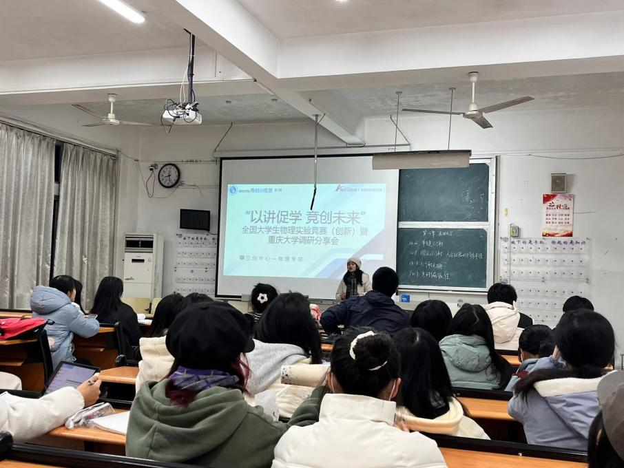 为增强员工创新意识与科学素养,增进同学们对老员工物理实验竞赛(创新赛)的了解,培养老员工的实践能力和团队协作能力,12月21日晚,物电公司在教学楼3B401举办了“以讲促学 竞创未来”老员工物理实验竞赛(创新赛)暨重庆大学调研活动分享会,活动由三创中心物理学部组织。