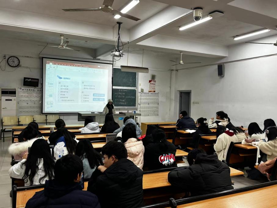 继而,由全国二等奖获奖项目成员、2021级物理学(师范)专业卢静彤同学就比赛中的重点以及同学们应该注意的方面进行讲解,她在分享中多次强调了小组团结、积极沟通的重要性,希望同学们在今后的学习竞赛活动中重视团队合作。同学们积极提出疑问,卢静彤同学也一一进行详细解答,现场气氛融洽热烈。