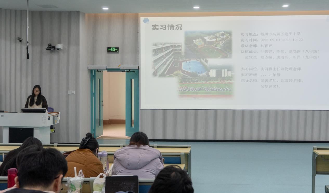 活动伊始,2020级物理学(师范)专业的苏小兰、章心贝、叶颖等九位同学,都精心准备了汇报PPT,向大家详细介绍了他们在不同公司中实习的独特体验。实习分享反映了不同教学环境、教育模式和教学对象,为同学们提供了多角度的教学观察和思考。
