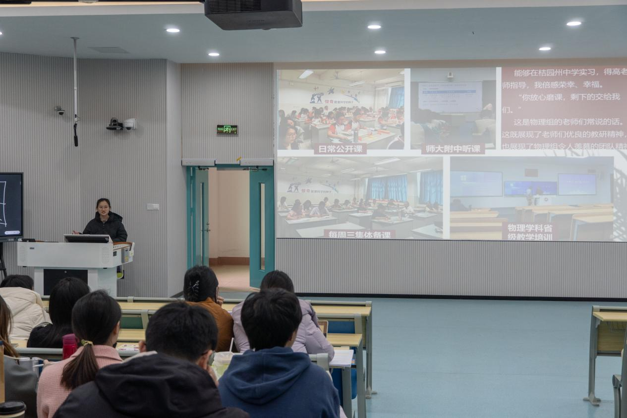 公司党委副书记张林雯首先致辞,她对实习指导老师的辛勤付出、实习单位提供的实习机会表示感谢,她指出,教育实习是培育师范生的重要环节,有助于在实践中提升专业素养;汇报会首次邀请全体物理师范生参加,有利于不同年级间相互交流,进一步坚定专业思想,做好职业生涯规划。