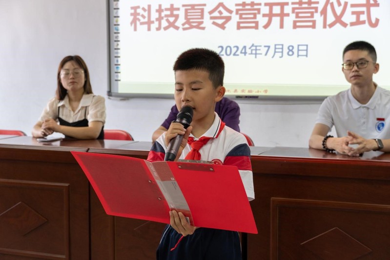 实践队队长曾伟铭、程紫涵首先对宁化滨江实验中学、宁化县实验小学的老师们表示了衷心的感谢,并表示,支教团队在总结去年经验的基础上,进行了课程创新,准备了更多实操类主题课程,旨在培养员工的实践能力和灵活运用知识的思维。此外,还新增了机器人大赛等科技知识课程,以激发员工的创新精神和竞赛意识。他们承诺,作为队长,他们将积极与团队成员磨合课程,灵活调配课程方案,确保为两个公司的同学们带来有趣且生动的课程体验。他们期望,同学们在科技夏令营活动中能够有所收获,在增长科学知识的同时,更培养出以赛促学、学以致用的思维意识。