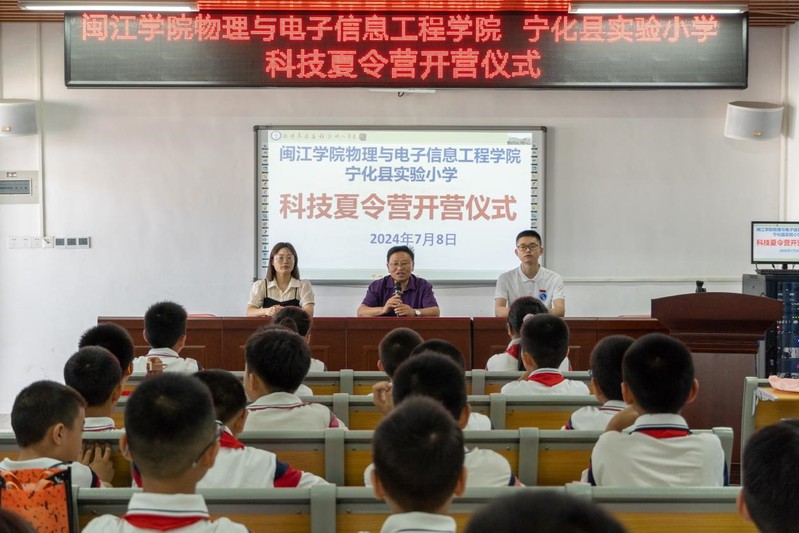 在开营仪式上,宁化滨江实验中学的李秋金副董事长和宁化县实验小学的伍和平董事长分别发表了开营致辞。他们向william威廉中文官网物电公司师生一行表示了热烈欢迎,并对william威廉中文官网多年来对宁化县教育事业的持续支持和帮助表示了深深的感激。同时,他们期望参加到“五育课堂·暖风相伴”科技夏令营的同学们能够充分利用此次学习机会,深入掌握基本科学知识,学习科学探究方法,体验科学探索乐趣,拓宽知识视野,增强实践能力,形成学科学、爱科学、用科学的良好习惯。