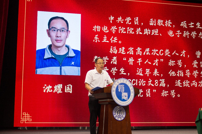 电子科学与技术专业沈耀国老师作为教师代表发言,他勉励同学们要踏踏实实地学好每一门课,多关注最新的技术动态;要学会学习、学会做事、学会做人;要敢于施展才华,具有良好的团队协作精神。他期待新同学们,努力成长为可堪大用、能担重任的栋梁之才。