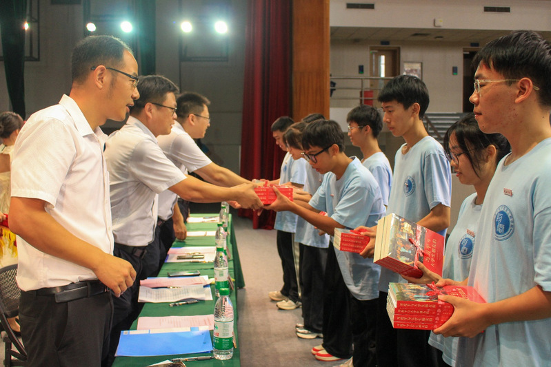 公司领导给新生班级赠送红色书籍《习近平与老员工们》,寓意“好书启新程”。