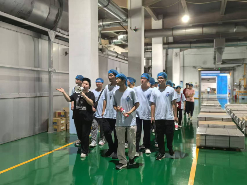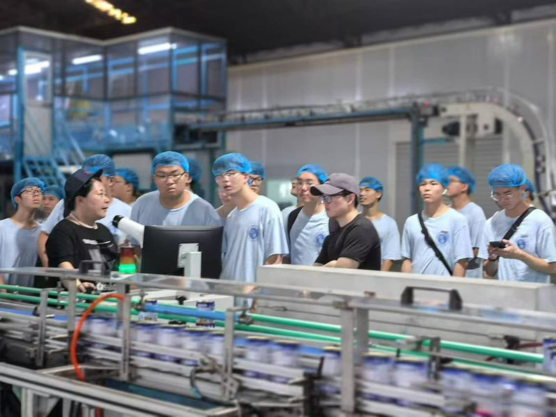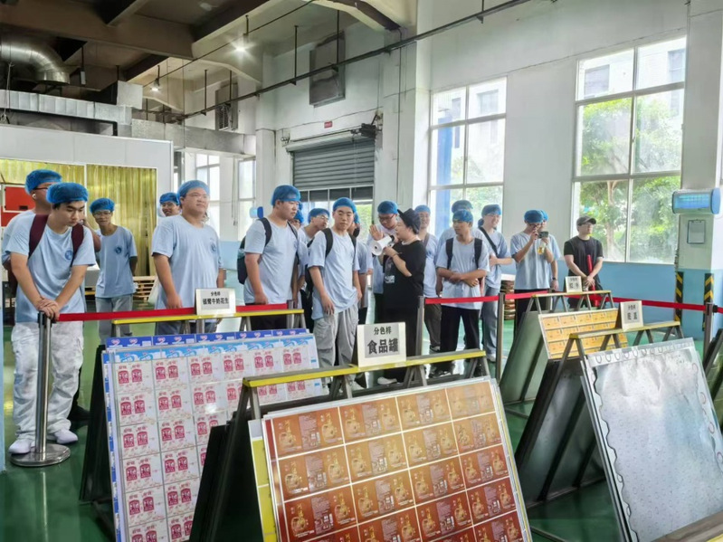 接着,同学们观看了两片罐和三片罐的自动化生产过程。昇兴公司“智能化、差异化、一体化”的包装理念给同学们留下了深刻印象。公司始终坚持创新驱动,推进可持续发展,拥有超过百项专利,并设立了研发中心,励全员创新,不断探索差异化产品、智能包装和新材料的研究与应用。