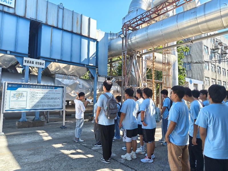 随后,同学们在负责人的带领下参观了生产车间,重点了解了RTO(蓄热式燃烧系统)的工作原理及技术特点,深入学习了其蓄热过程和运行机制。在参观过程中,自动化包装设备的高效运行展现了昇兴人智慧与汗水的结晶,让同学们感受到现代化生产的魅力。
