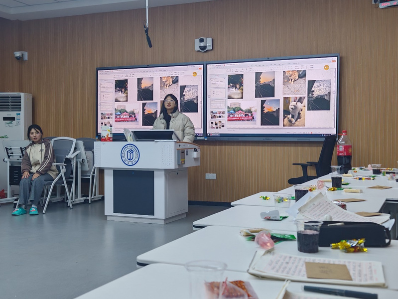接下来的班委总结环节,各班委依次发言,总结一学期的工作成果,分享经验和感悟,同时感谢同学们的支持与配合。辅导员白洁玉结合班级的成长轨迹,肯定了班干部的努力和班级的凝聚力,为同学们送上新年祝福并勉励大家在期末考试中全力以赴。