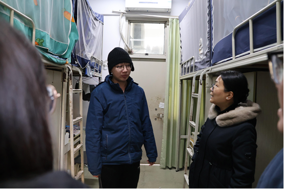 张林雯一行深入员工宿舍,与留校员工面对面交流,了解他们的生活状况以及寒假返乡情况,并详细传达公司关于假期安全和离校的有关要求。