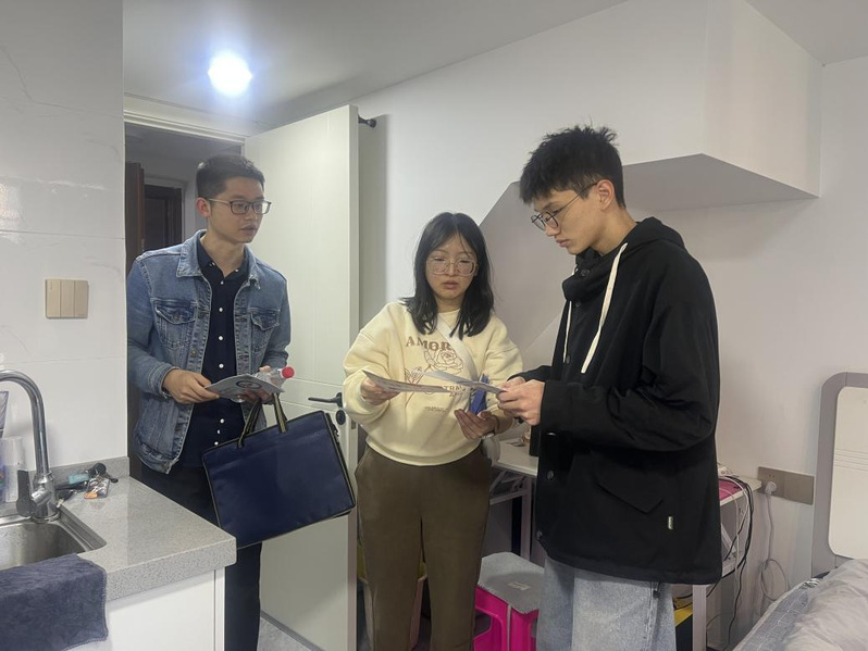 3月22日下午,为进一步加强外宿员工的安全管理与教育,提升员工的防诈意识,确保员工生命财产安全,公司党委副书记张林雯带队,前往大唐书香世家、正祥学林丰茂、上街镇联心村等员工集中外宿住所开展安全检查与防诈宣传活动。辅导员曾诚、姚嘉杰、白洁玉陪同走访。