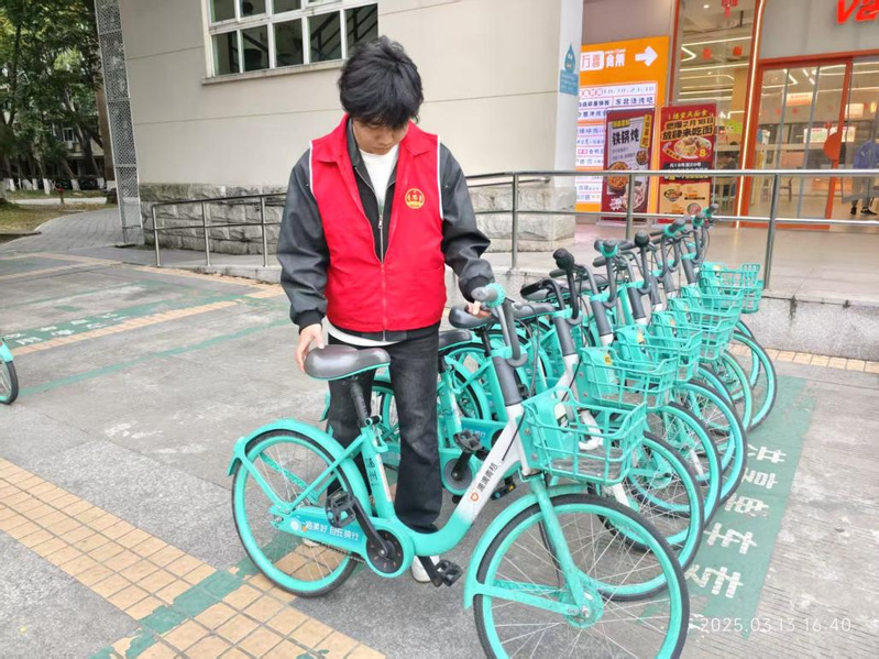 “雷锋日”当天,志愿者分组深入实验室、宿舍区、教学楼,扫帚与抹布齐动,连卫生死角也焕然一新。课余时间,食堂周边、社区道路上,他们将乱停车辆 “化零为整”,用行动筑起文明秩序的标尺。