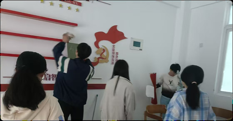 志愿者们对党建读书角进行全面清洁,对图书角的书籍进行逐一检查和筛选,依据出版年限、书籍状况筛选出时间久、破损严重、内容过时书籍,做好记录并分类堆放。