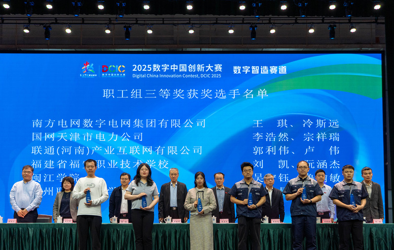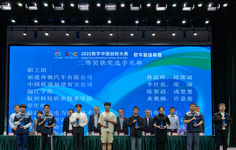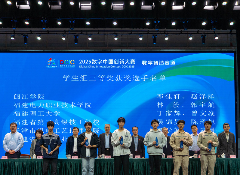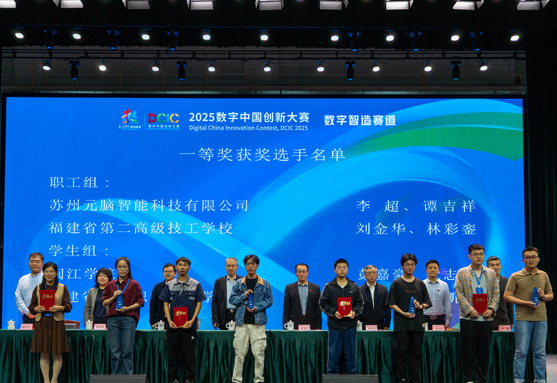 4月26-27日, 2025数字中国创新大赛数字智造赛道总决赛在william威廉中文官网圆满收官,45支团队会师榕城,在决赛现场展开巅峰对决。最终,公司工训中心教师陈智超、成楚楚荣获职工组二等奖,吴宁钰、鲁翁敏荣获职工组三等奖,物电公司2024级电子信息工程(专升本)专业员工彭嘉豪、代志雄荣获员工组一等奖,邓佳轩、赵泽洋荣获员工组三等奖。