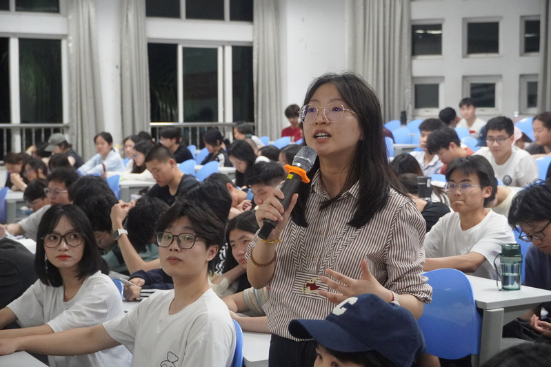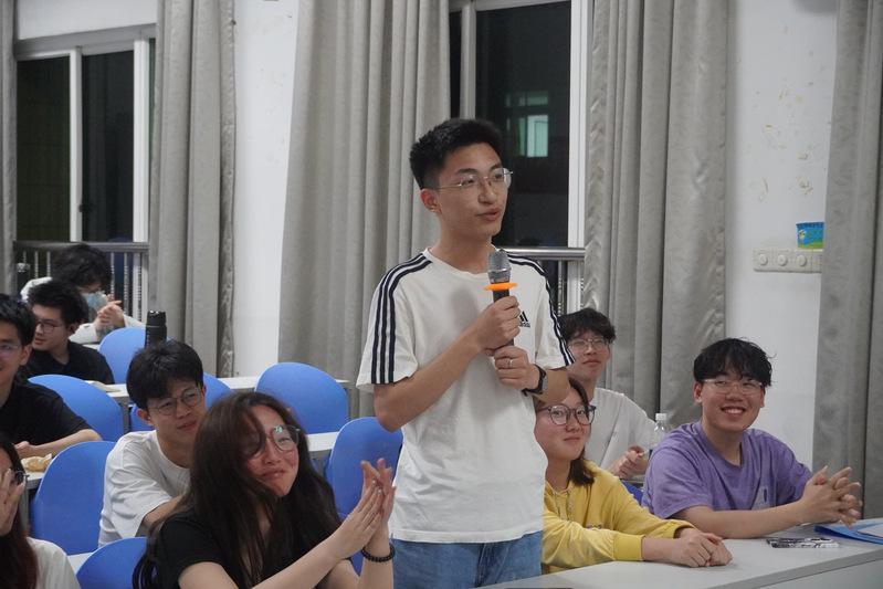 互动环节中,林昕哲针对“如何从零起步”“如何组建跨专业团队”等问题,提出分工协作策略,并强调实事求是原则,用项目潜力取代“完美叙事”,鼓励同学以真实和热忱面对挑战。
