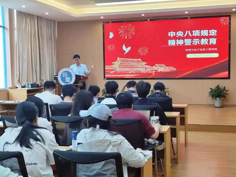 为加强毕业生党员廉洁自律意识、筑牢防腐拒变思想防线,5月13日下午,物电公司党委以“违反中央八项规定精神警示教育”为主题,开展2025届毕业生党员教育活动。公司党委书记洪晓林主讲,全体毕业生党员参加,党委组织员郑炜彬主持。