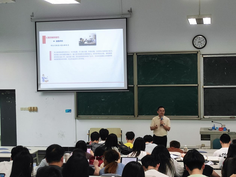 讲座伊始,周德双老师深入解读了当前就业形势与政策导向,为同学们提供了专业的职业规划建议。在实务指导环节,周老师重点讲解了如何打造具有竞争力的求职简历和面试技巧提升两大核心内容,通过丰富的案例分析和互动交流,帮助同学们掌握求职关键技能。