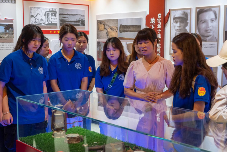 南山地下航线作为解放战争时期闽浙赣地下党精心开辟的重要秘密交通线,在烽火岁月中肩负着物资运输、情报传递、干部护送等关键使命,为福建解放事业的最终胜利立下了不可磨灭的功勋。步入纪念馆陈列室,一幅幅泛黄的历史图片定格着烽火瞬间,一件件承载记忆的文物展品诉说着峥嵘往事,一段段可歌可泣的英雄事迹传递着信仰力量。实践队员们紧随讲解员的步伐,认真聆听革命先辈在艰苦卓绝的环境中与敌人斗智斗勇的斗争历程,不时在展陈前驻足凝视、低声交流。透过历史的镜头,队员们仿佛穿越至那个硝烟弥漫的年代,深切体悟到革命先辈们对党忠诚的政治品格、不怕牺牲的斗争精神和心系人民的家国情怀。