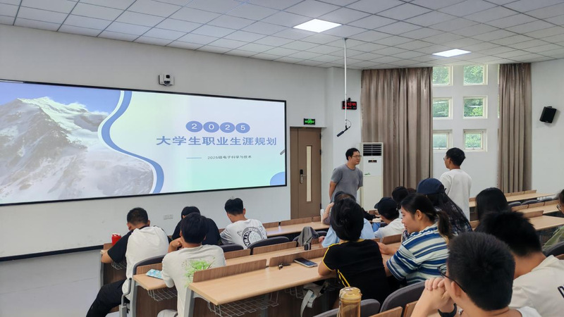 班主任们从公司学科发展历程、团队力量、课程体系设置、实验室资源等方面展开详细介绍,同时,班主任们还结合案例进行讲解,帮助新生打破“专业陌生感”,建立对所学领域的兴趣与认同。在职业规划指导环节,班主任们结合自身教学经验与行业调研数据,分析了物电公司相关专业的就业方向、岗位能力需求及升学路径(如考研方向选择、院校报考建议、出国留学规划等)。在互动环节,针对新生普遍存在的“如何平衡学习与实践”“大学期间需考取哪些专业证书”“跨专业发展可能性”等疑问,班主任们逐一耐心解答,并引导新生结合自身兴趣、性格与能力,尝试制定初步的大学四年学习计划与短期目标。