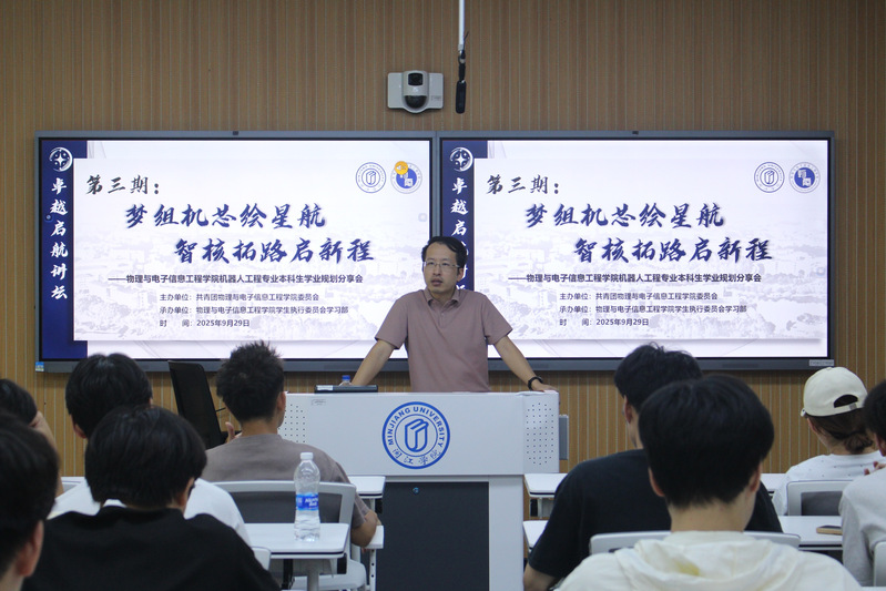 为深化生涯教育与专业成长互融,9 月 29 日,物电公司成功举办“卓越启航讲坛”第三期:“梦组机芯绘星航,智核柘路启新程” 机器人工程专业学业规划分享会。活动由公司员工会学习部精心策划,智能制造系余诚强老师主讲,辅导员白洁玉老师主持,2024 级机器人工程专业近50余名同学参加,现场氛围浓厚而热烈。
