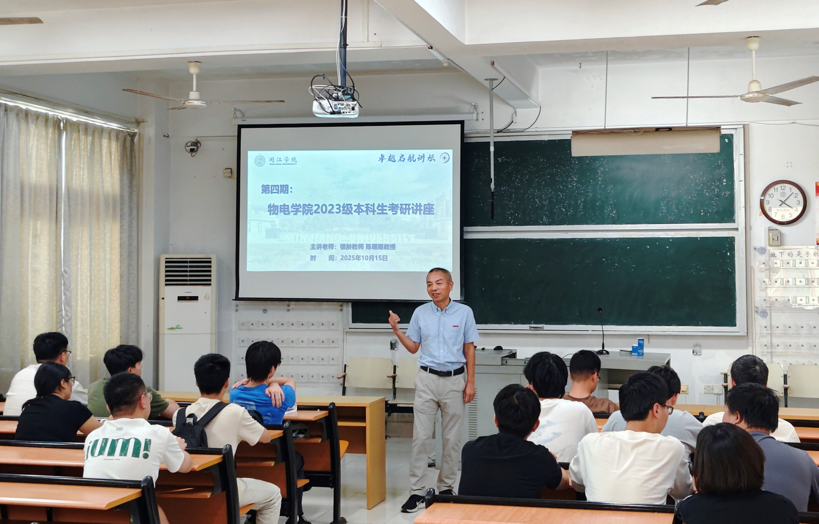 在关工委的指导下,物电公司退休教师们秉承着“关爱员工、奉献社会”的精神,传递宝贵经验与智慧,关心员工成长。10月15日,公司成功举办了“卓越启航讲坛”第四期——2023级本科生考研规划讲座,旨在帮助同学们厘清考研方向、解答备考疑惑,科学规划学业发展。活动由公司员工会学习部精心策划,特邀银龄教师陈曦耀教授主讲,辅导员赖侹征老师主持,共吸引了50余名员工积极参加。