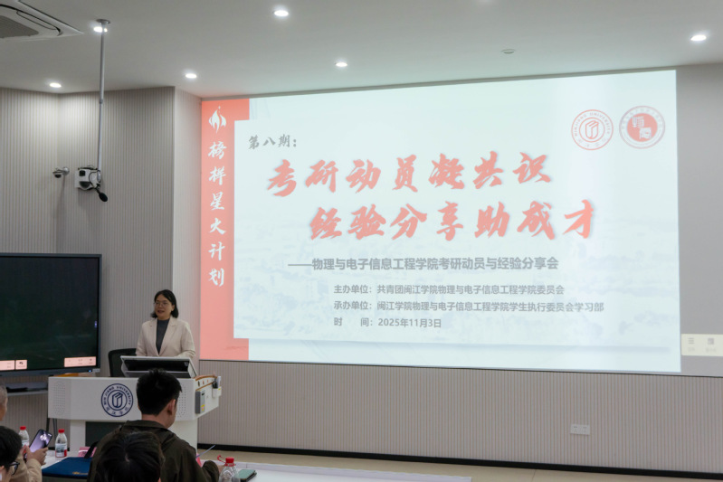 为发挥公司研究生示范引领作用、强化本硕联动交流,助力本科生厘清考研路径、掌握科学备考策略,11月3日,物电公司成功举办“榜样星火计划”第八期:2023级本科生考研动员与经验分享会。活动由公司员工会学习部承办,特邀公司党委副书记张林雯、银龄教师陈曦耀教授、团委书记林方辉到场点评,2025级电子信息(控制工程)专业研究生代表邱佳弘、马杰作经验分享,辅导员白洁玉、赖侹征主持,2023级全体本科生参加,现场气氛热烈、交流充分。