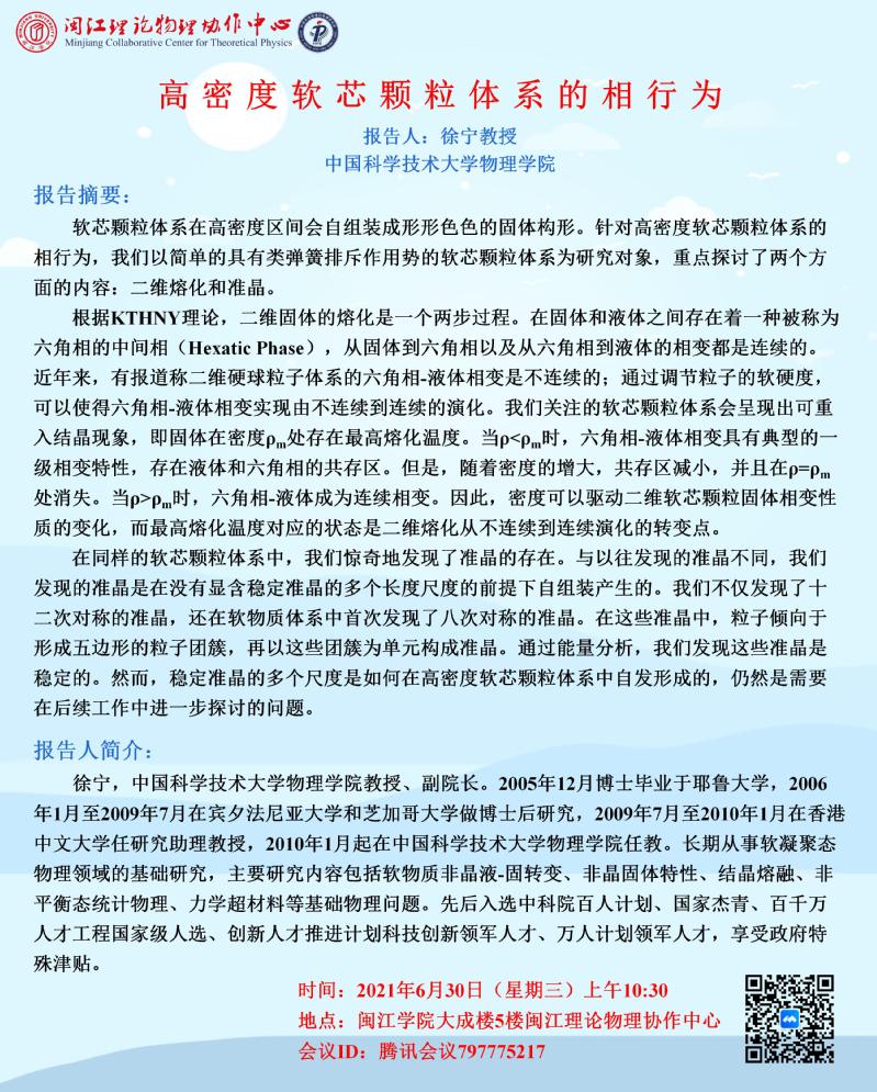 闽江理论物理协作中心邀请中国科学技术大学徐宁教授前来学术交流并做报告。