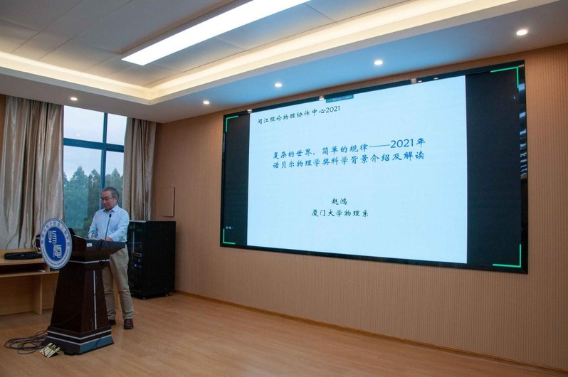 为了让同学们更加了解2021年诺贝尔物理学奖,2021114日下午,闽江理论物理协作中心指导委员会委员、厦门大学物理科学与技术公司教授、博士生导师,国家杰出青年科学基金获得者赵鸿教授以“2021年诺贝尔物理学奖科学背景介绍及解读为题,为广大师生作了科普报告,报告由物电公司学术经理邓友金教授主持。
