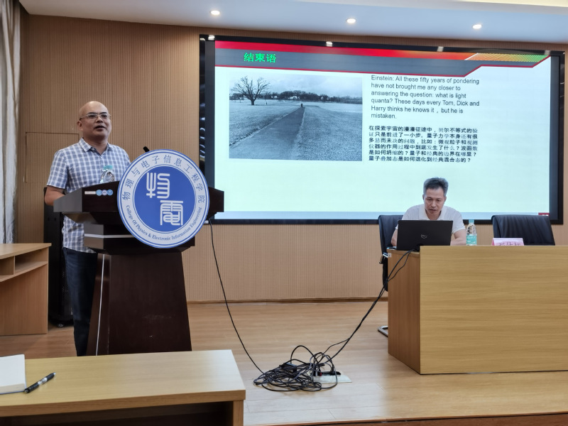 讲座开始前,陈兴明副董事长首先对郑仕标教授的莅临表示衷心感谢和热烈欢迎。他表示,郑教授长期从事量子光学和量子信息方面的科研及相关教学工作,围绕该领域的重要科学问题和瓶颈技术,开展相关科学研究,已取得了一系列富有创新性的研究成果。在国际上,2012年诺贝尔物理学奖获得者Serge Haroche领导的小组认为郑教授所提出的理论方案为复杂纠缠操纵开辟了很有希望的前景,在量子信息处理方面很有前途。郑教授的这份孜孜不倦、潜心专研的初心和奋楫笃行、臻于至善的治学态度是我们研习进取的榜样。